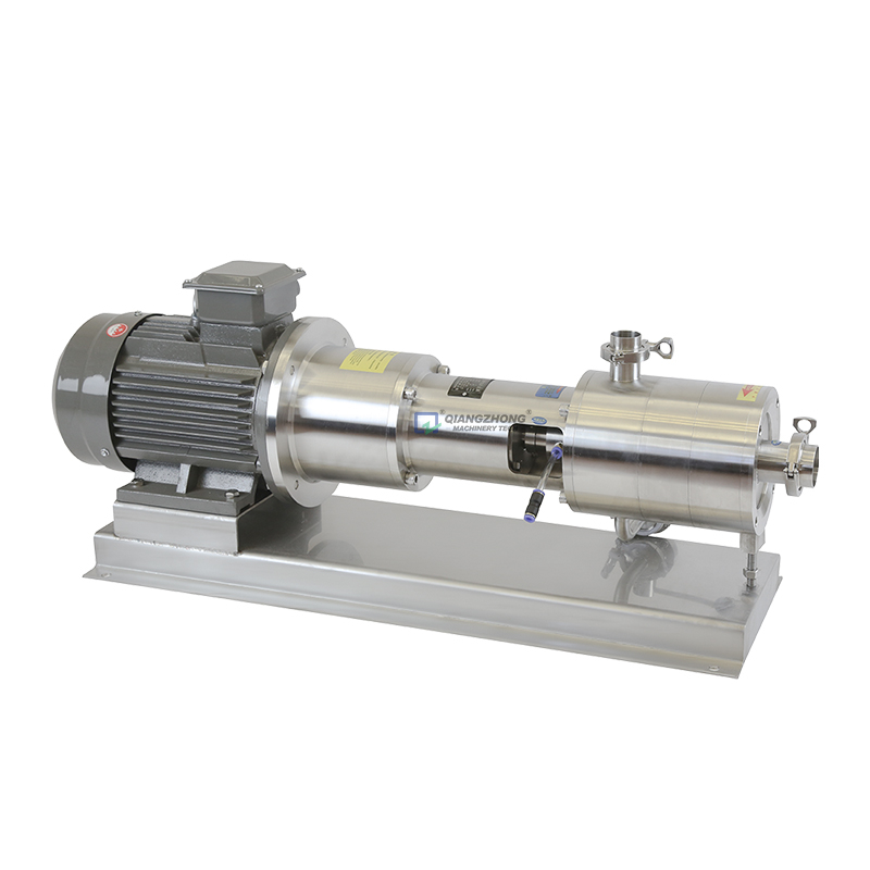 均质乳化泵/管线式高剪切分散乳化机是高效、快速、均匀地将一个相或多个相分布到另一个连续相中,而在通常情况下各个相是互不相溶的。由于转子高速旋转所产生的高切线速度和高频机械效应带来的强劲动能,使物料在定、转子狭窄的间隙中受到强烈的机械及液力剪切、离心挤压、液层摩擦、撞击撕裂和湍流等综合作用,从而使不相溶的固相、液相、气相在相应成熟工艺和适量添加剂的共同作用下,瞬间均匀精细的分散乳化,经过高频的循环往复,最终得到稳定的高品质产品。